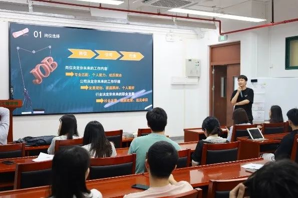 为增强学生职业规划意识,提升学生的职业素养和就业竞争力,在线直播 于4月12日晚在389栋414室举行“奔赴热爱,职引未来”活动,研究生刘念、周德种、曾小慧、苏倩、张鹏等五位同学围绕选岗心得、简历润色、笔试准备、面试技巧、职业介绍、求职心路历程等主题进行经验分享,并与同学们互动交流、答疑解惑。活动由学院研究生会承办,学院党委副书记袁婷老师、团委书记郑嘉茵老师出席分享会。