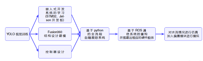 1. 项目成功搭建完整的ROS2分布式智能水炮自瞄系统实现了从图像采集、目标检测、坐标变换到舵机控制的全流程贯通,并初步完成了硬件的搭建和测试。核心算法方面,优化了控制器、跟踪算法及坐标变换等追踪模块。硬件平台采用双体无人船设计,适配多种摄像头与计算模块,性能持续优化。