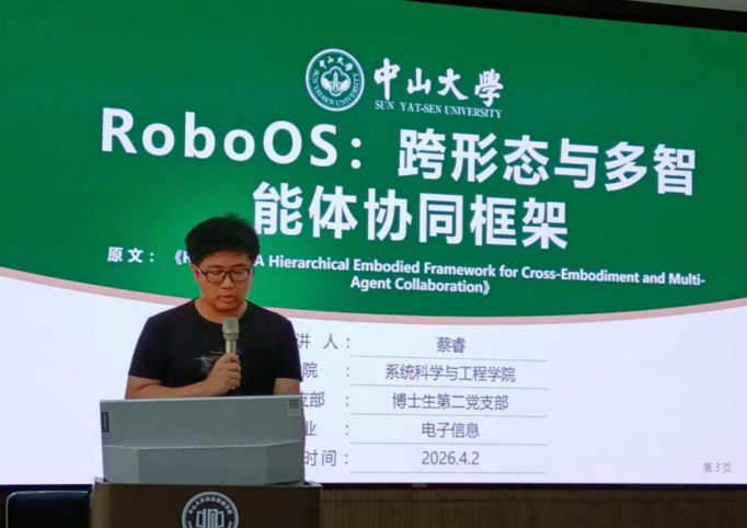 在线直播 2024级博士研究生蔡睿作了题为《RoboOS:跨形态与多智能体协同框架》的报告。他系统介绍了RoboOS通过云端大脑进行全局任务分解、边缘小脑实现低延迟执行、共享记忆支撑多机器人状态同步的创新设计,分析了一体化开源方案为异构机器人集群协同部署提供的通用底层能力,并展望了具身智能与多机器人协作在动态环境中的发展潜力。