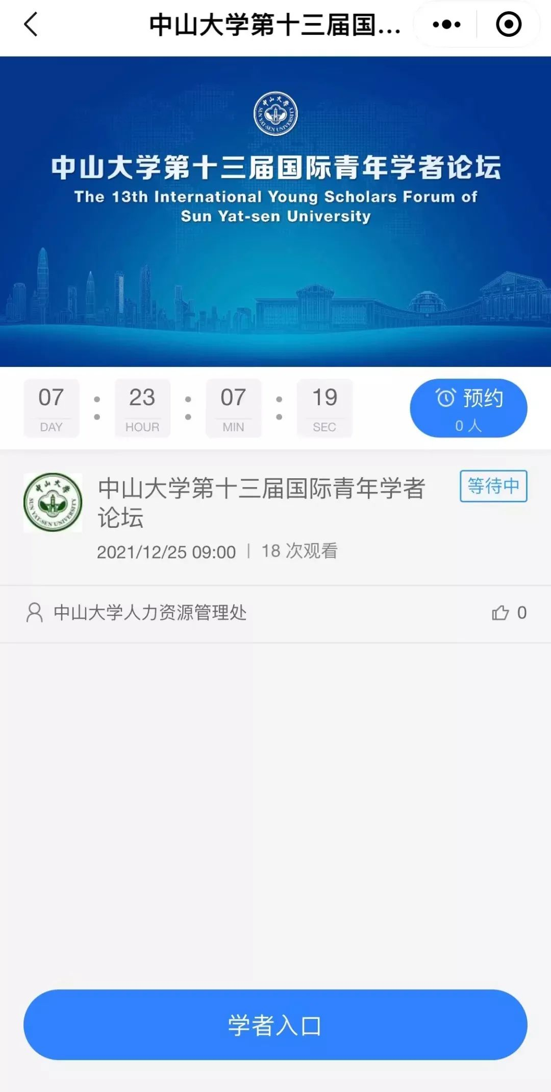 进入“中大人才招聘”小程序在线直播