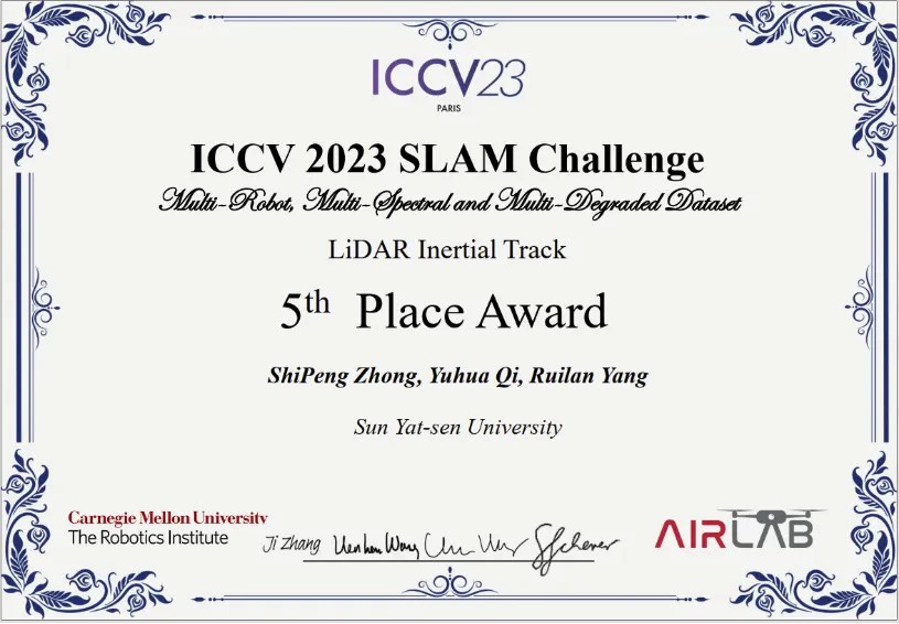 喜报!在线直播 师生在“ICCV2023年SLAM挑战赛”中荣获团体奖!