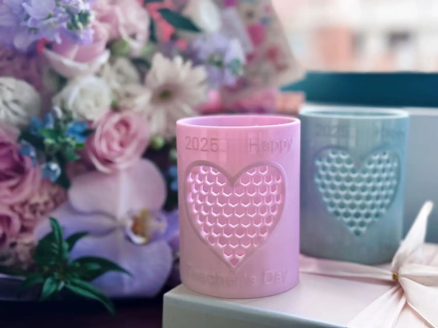 笔筒选用光感变色材料,在紫外线照射下会变换为蓝色与粉红色。两种颜色饱含寓意:蓝色象征着工科学院的沉稳与严谨,粉红色则寄托着老师们对学子的关爱与呵护。笔筒上印有每位老师的名字与学院LOGO,每一份礼物都独一无二,承载着学子们对恩师的深情厚谊。