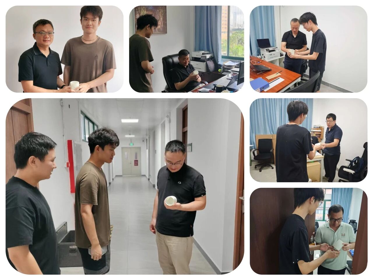 同学们精心准备了手写贺卡与鲜花,走进老师办公室、实验室,送上节日祝福。镜头里,同学们围在老师身旁,轻声诉说着课堂内外的收获与感谢;老师们或轻抚笔筒感受创意,或微笑合影,脸上满是欣慰与感动。这一幕幕无需修饰的互动,成为这个教师节最动人的记忆。